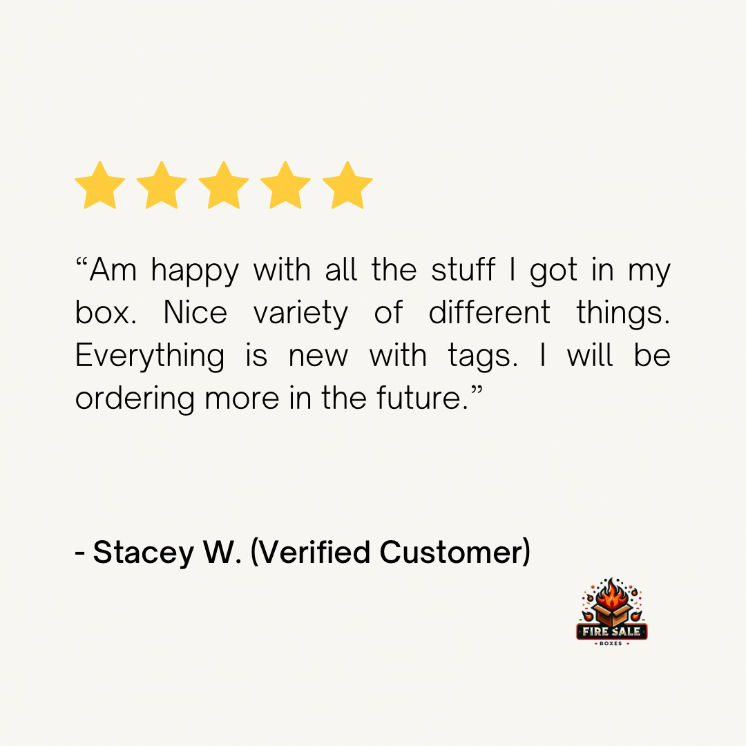 Fire Sale Boxes is built on years of experience in the liquidation and wholesale industry, with a proven track record of delivering both excitement and real value. We don’t just claim it—our many happy customers, positive reviews, and industry recognition back it up.