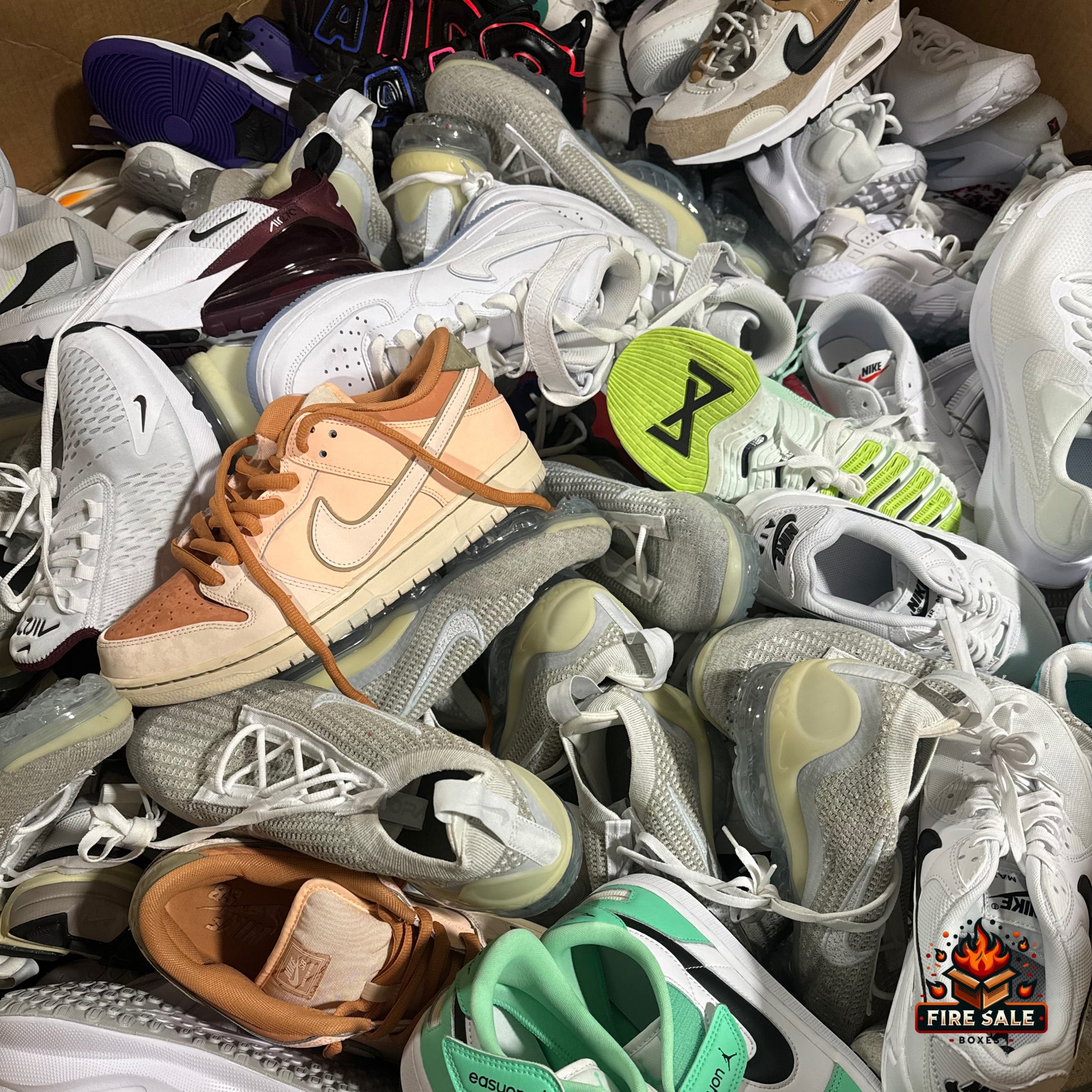 - Large shoes profit boxes will contain all name brand sneakers, heels, boots, etc.